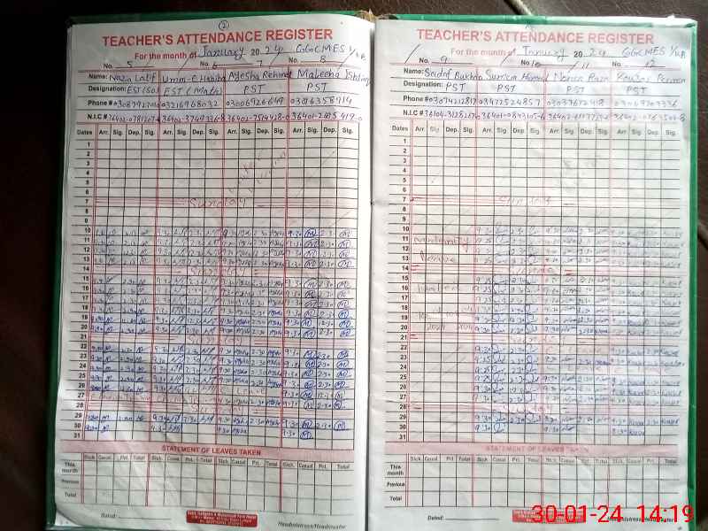 | CNIC | Full Name | Designation | R/C | Absence During Last Calender Month |