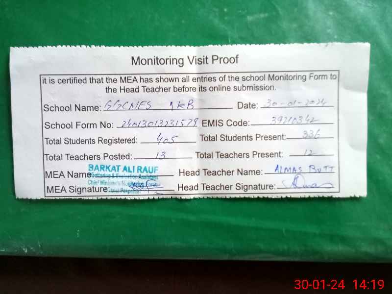 | EMIS Code: 39210342 | Name of School: GGCMES 1 KB PAKPATTAN | |||