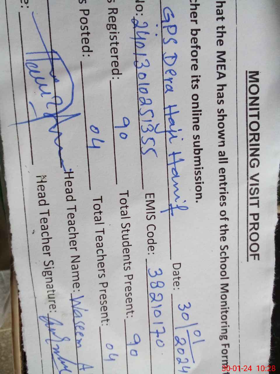 | EMIS Code: 38210170 | Name of School: GPS DERA HAJI HANIF | |||