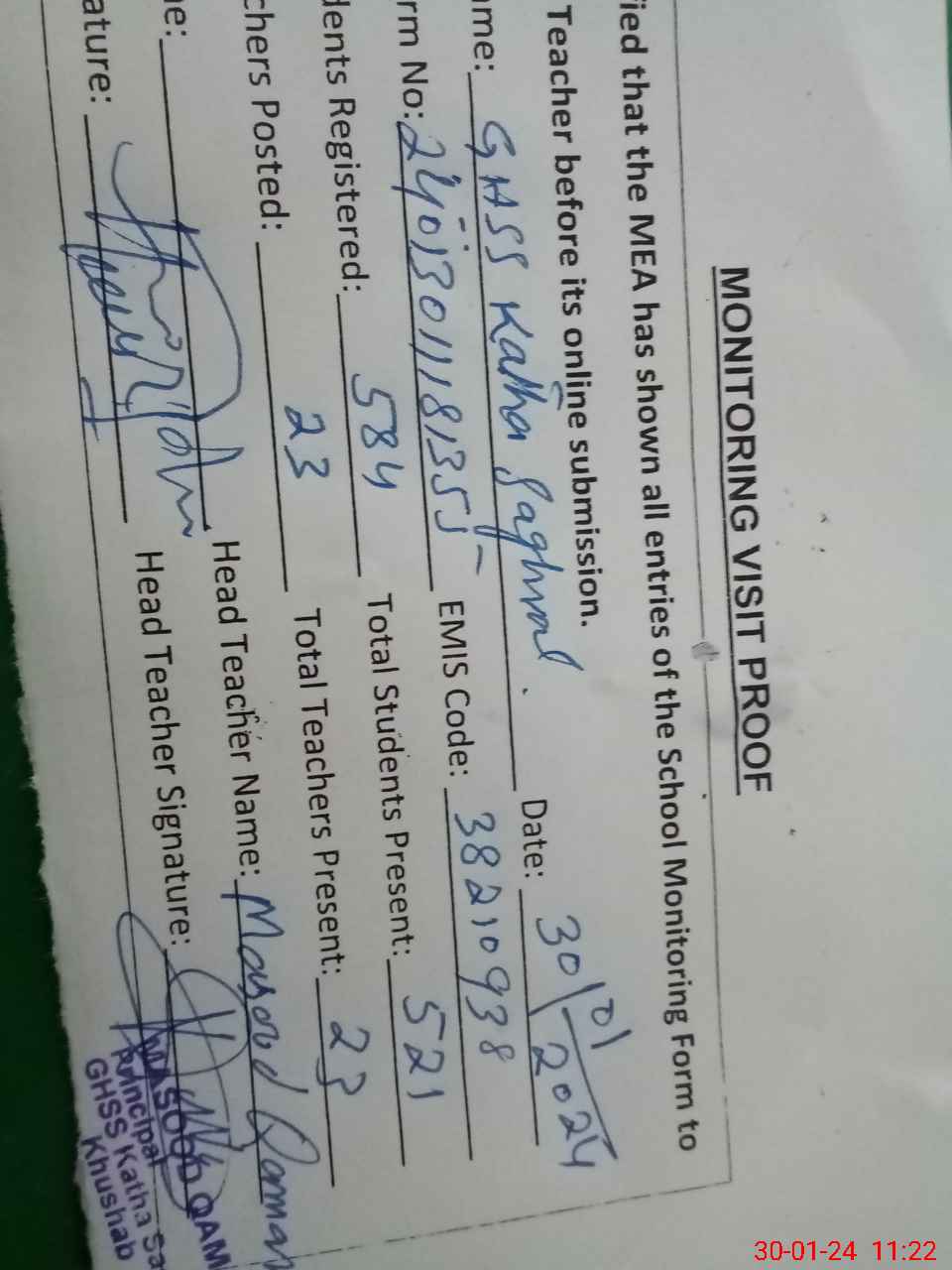 | EMIS Code: 38210938 | Name of School: GHSS KATHA SAGHRAL | |||