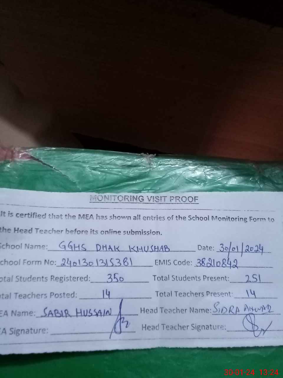 | EMIS Code: 38210842 | Name of School: GGHS DHAK KHUSHAB | |||