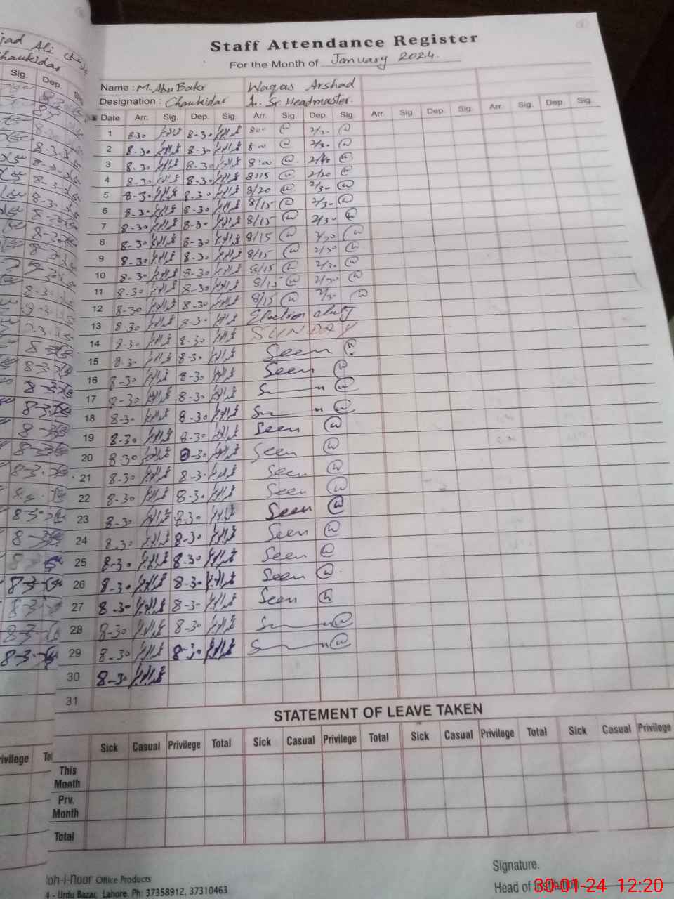 | 34**** | Mu**** As**** | 2 | 2 | 0 | 0 | 0 | 0 | 0 | 0 | 0 | 0 | 0 | Absent (Un-Authorized) |
