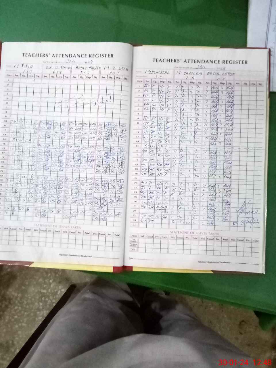 | CNIC | Full Name | Designation | R/C | Absence During Last Calender Month |