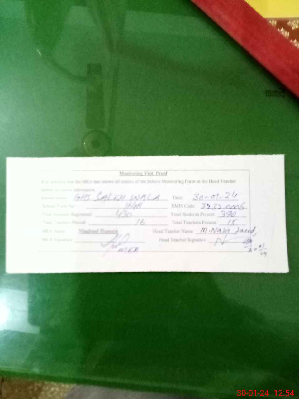 | EMIS Code: 32320006 | Name of School: GHS SALEH WALA | |||