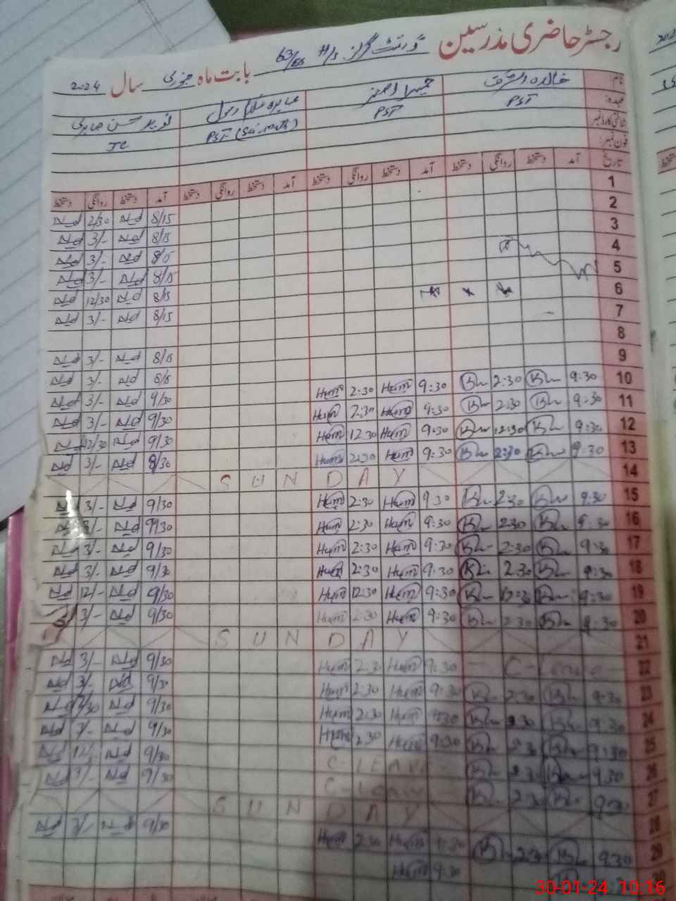 | CNIC | Full Name | Designation | R/C | Absence During Last Calender Month |