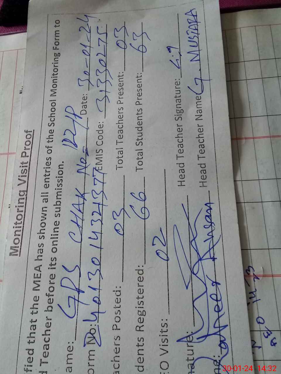 | Name: Gh**** Mu**** Designation: (School Headmaster's/Headmistress's) PST Phone/Cell Number: 03**** |