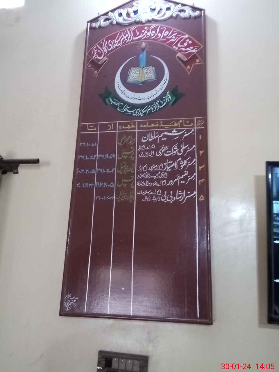 | Name: IR**** BI**** Designation: (School Headmaster's/Headmistress's) I/C PRINCIPAL SSS Phone/Cell Number: 03**** |