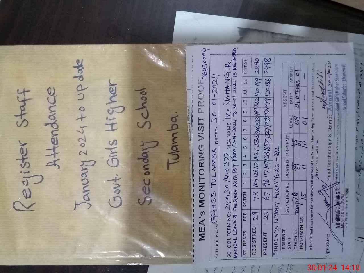 | Attendance Register | Head Teacher | MEA with School | Visit Proof |