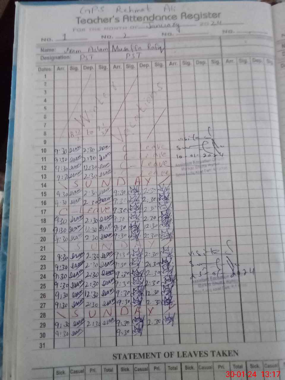 | Name: IR**** AS**** Designation: (School Headmaster's/Headmistress's) PST Phone/Cell Number: 03**** |