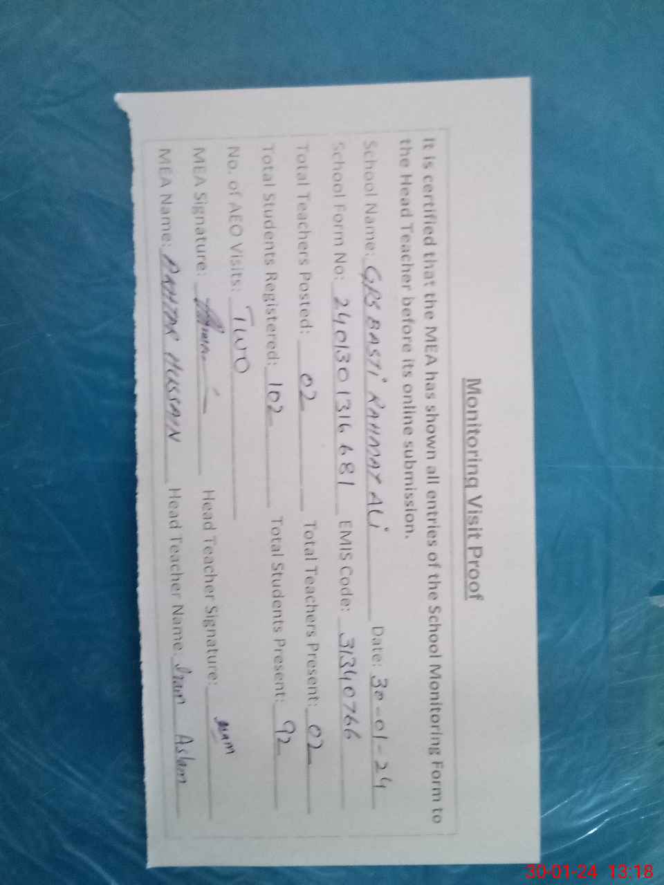 | EMIS Code: 31340766 | Name of School: GPS BASTI RAHMAT ALI | |||