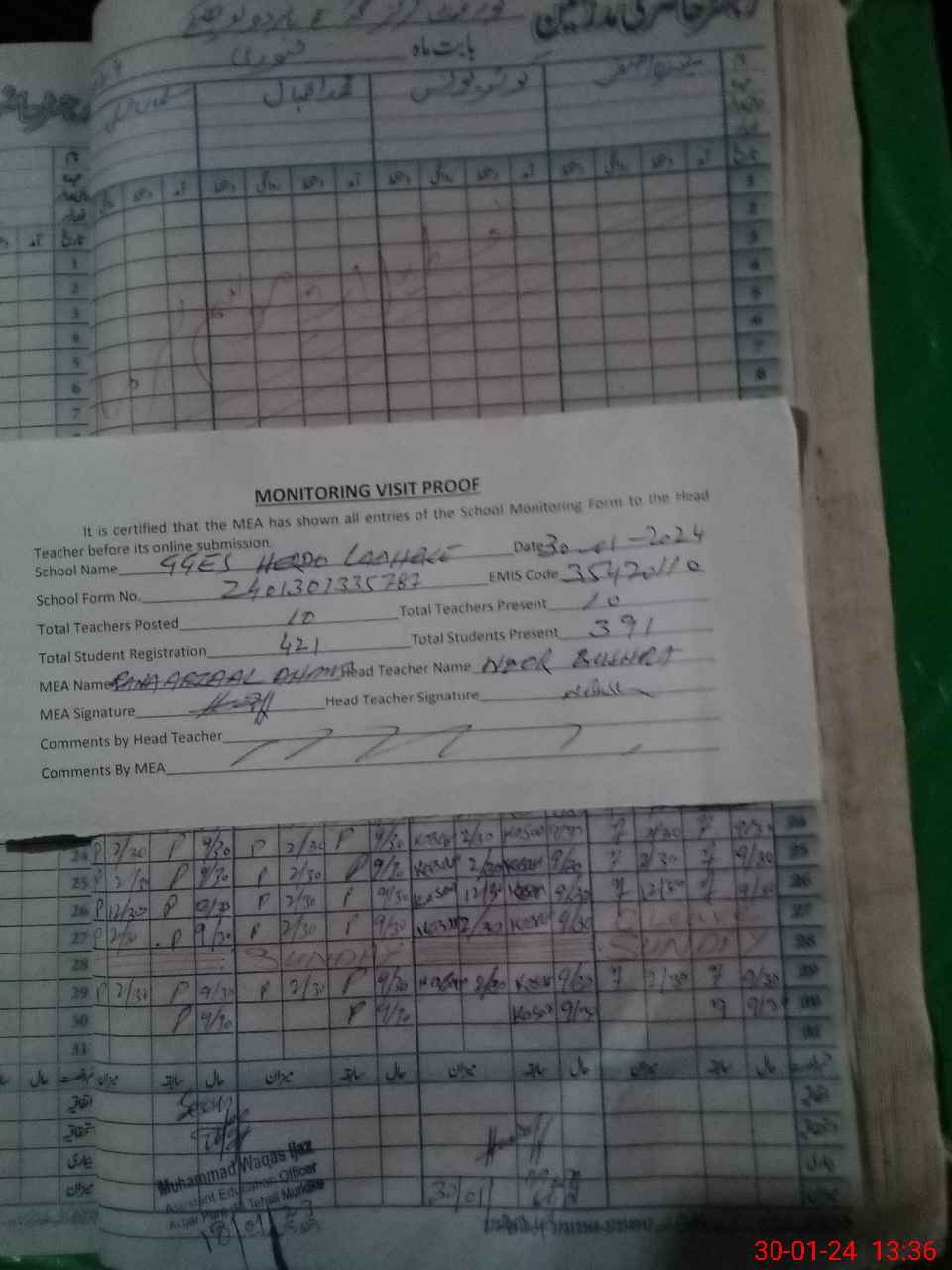 | Attendance Register | Head Teacher | MEA with School | Visit Proof |