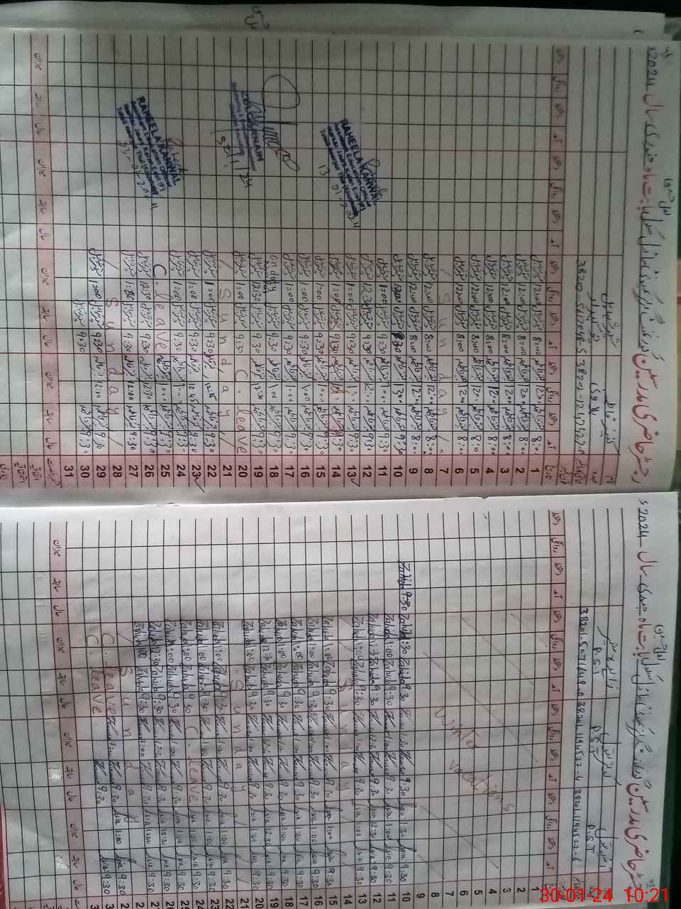 | CNIC | Full Name | Designation | R/C | Absence During Last Calender Month |