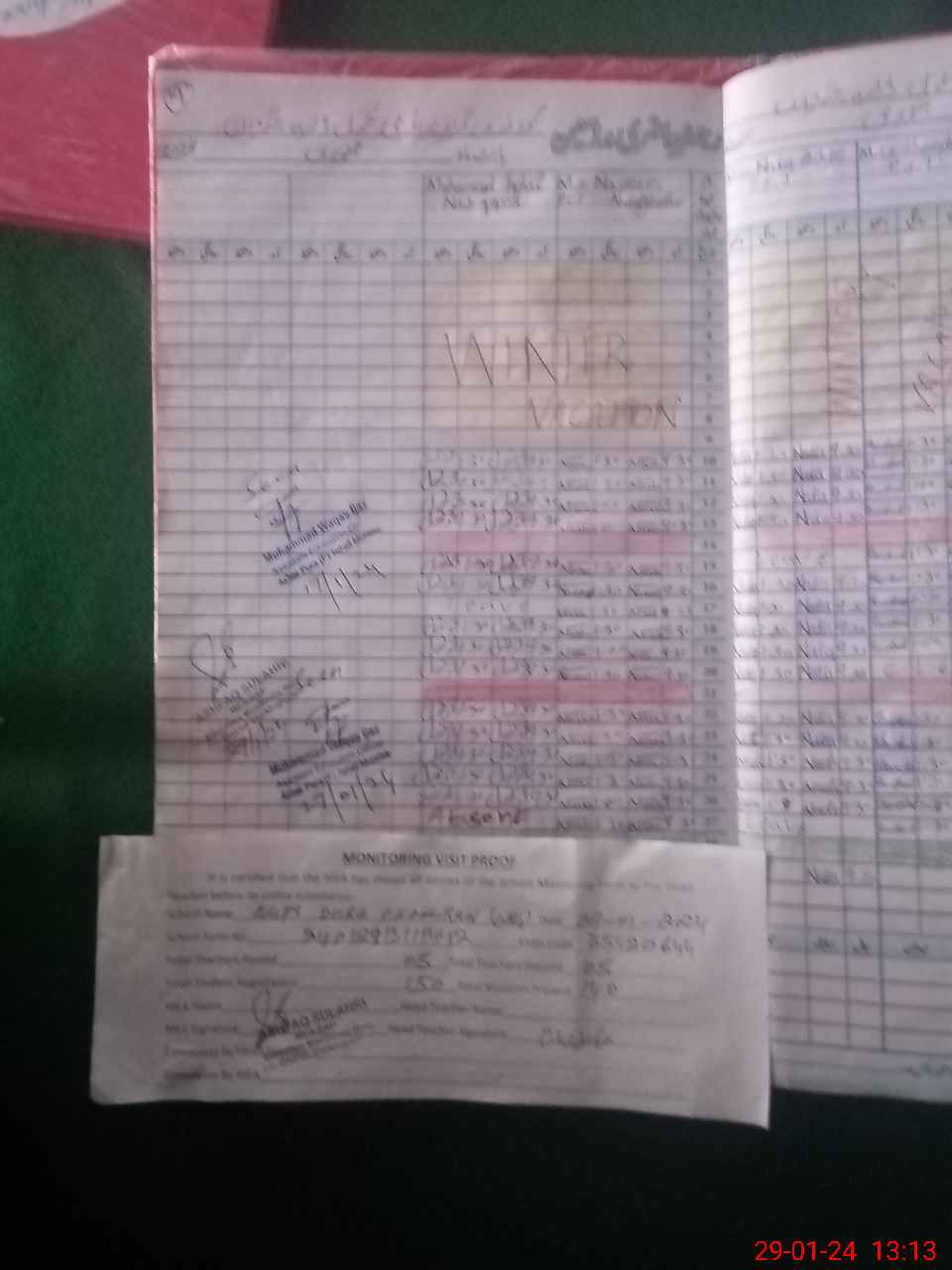 | Attendance Register | Head Teacher | MEA with School | Visit Proof |