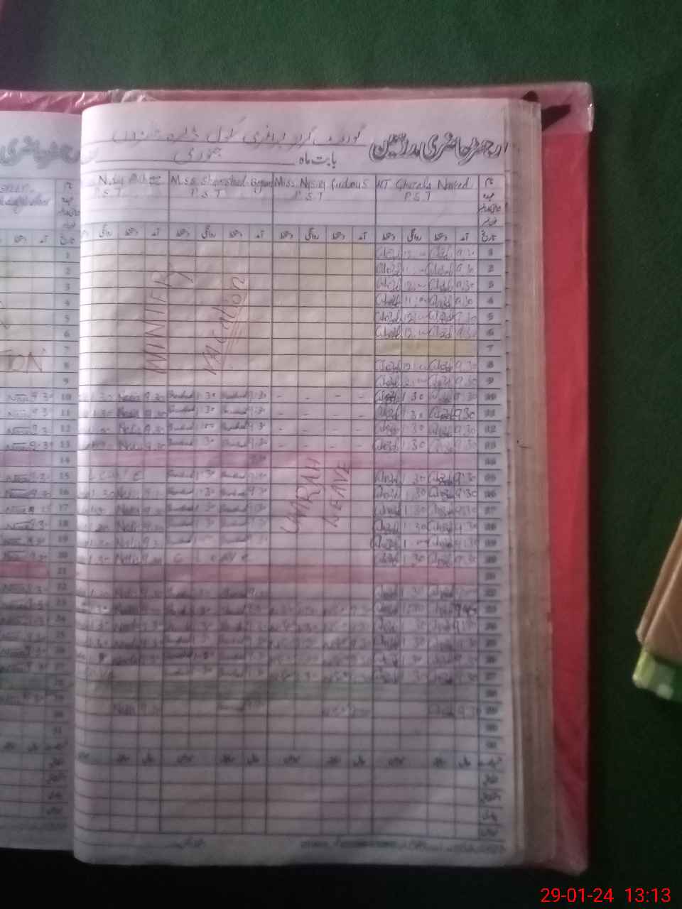 | CNIC | Full Name | Designation | R/C | Absence During Last Calender Month |
