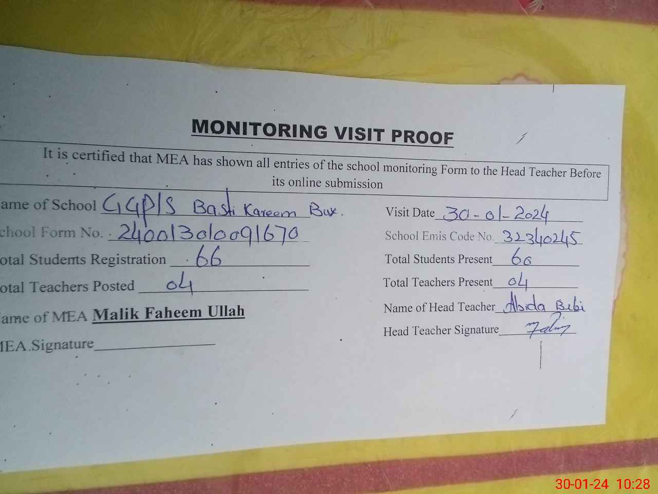 | EMIS Code: 32340245 | Name of School: GGPS BASTI KARIM BAKHSH | |||