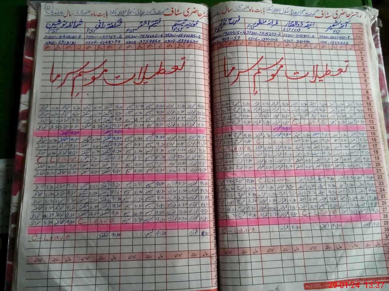 | CNIC | Full Name | Designation | R/C | Absence During Last Calender Month |