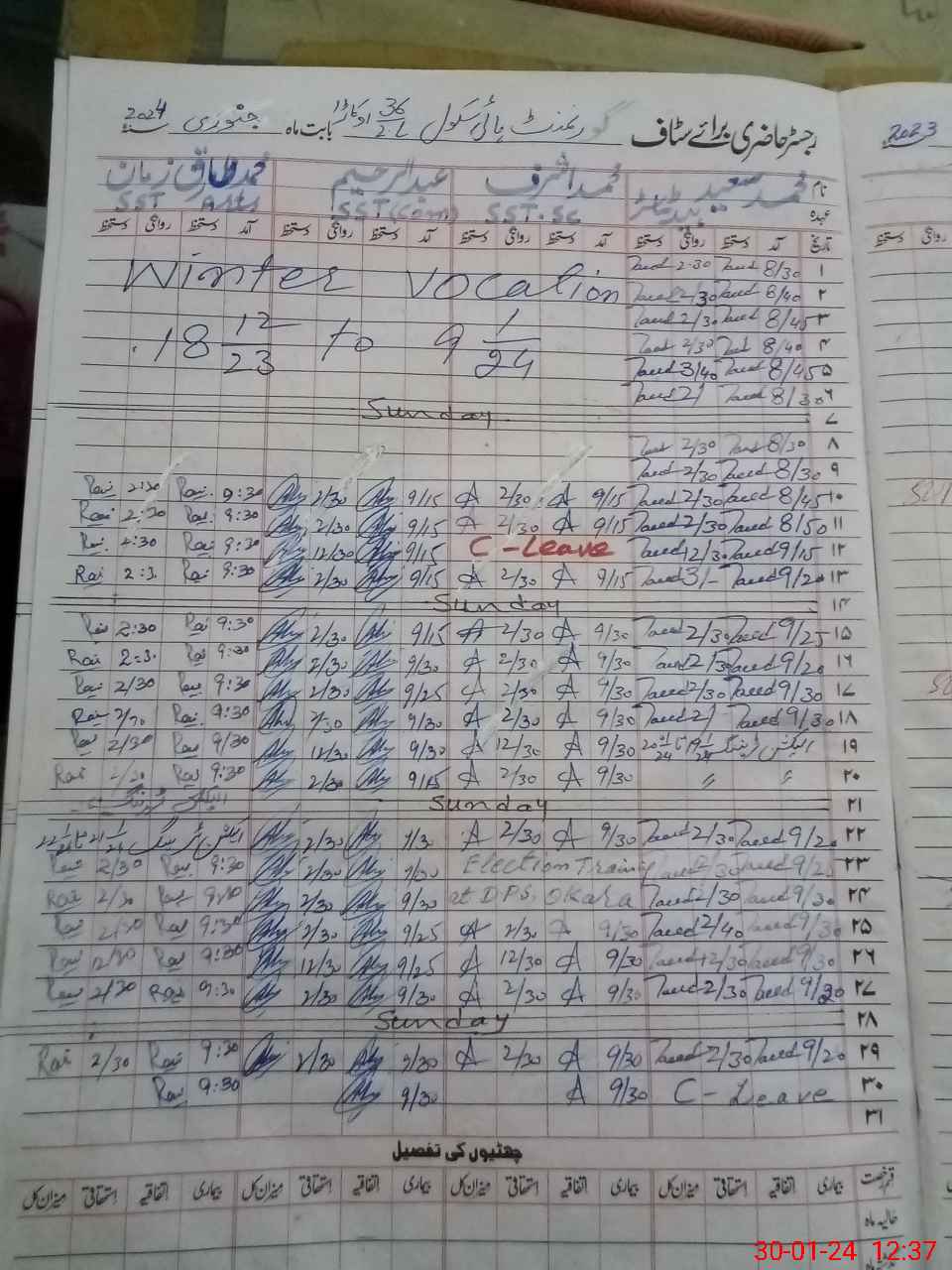 | CNIC | Full Name | Designation | R/C | Absence During Last Calender Month |