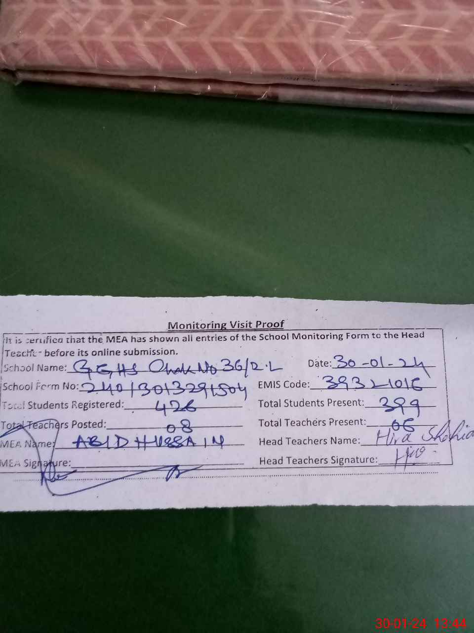 | EMIS Code: 39321016 | Name of School: GGHS CHAK NO. 36/2-L | |||