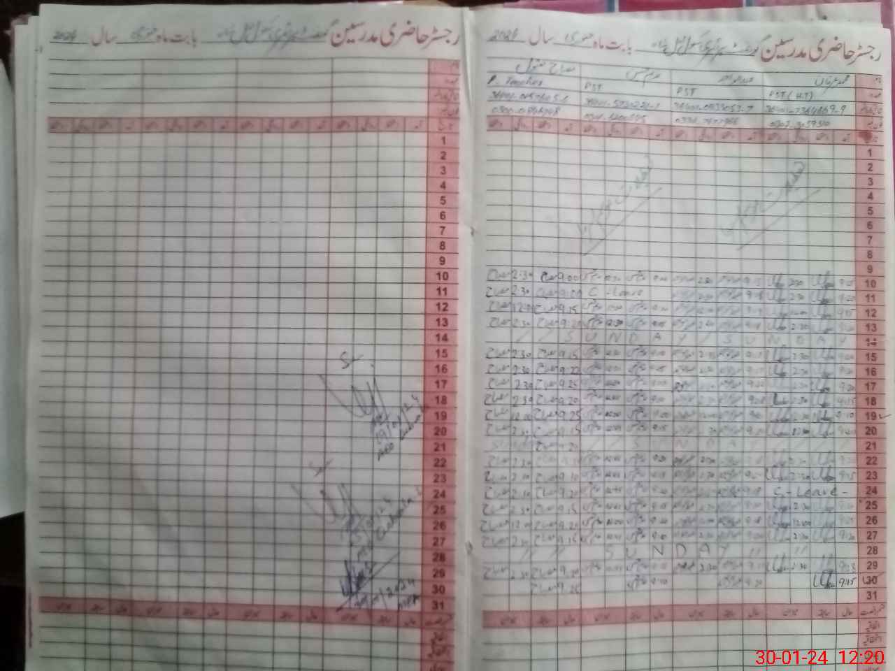 | CNIC | Full Name | Designation | R/C | Absence During Last Calender Month |