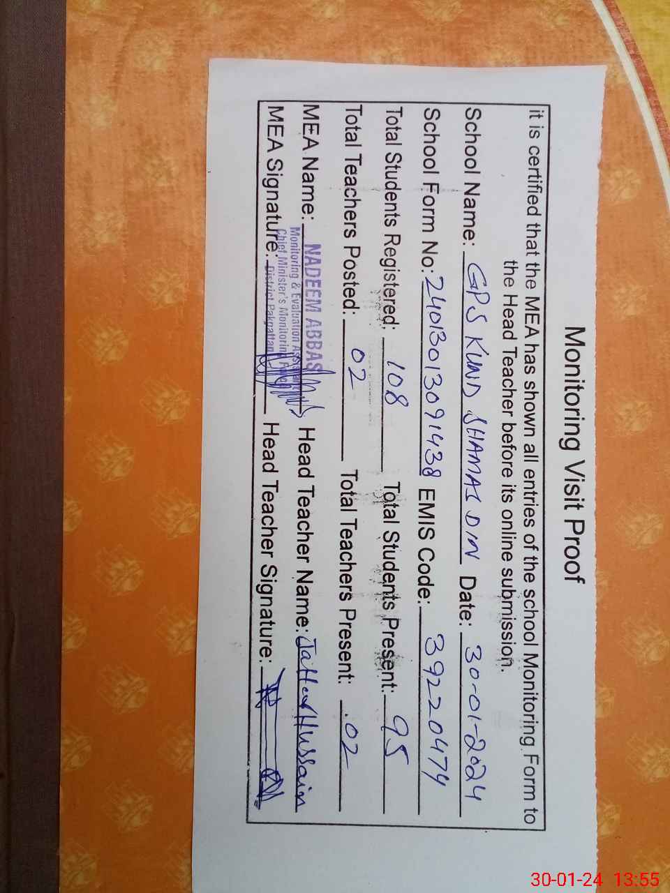 | EMIS Code: 39220474 | Name of School: GPS KUND SHAMAS DIN NO 2 | |||