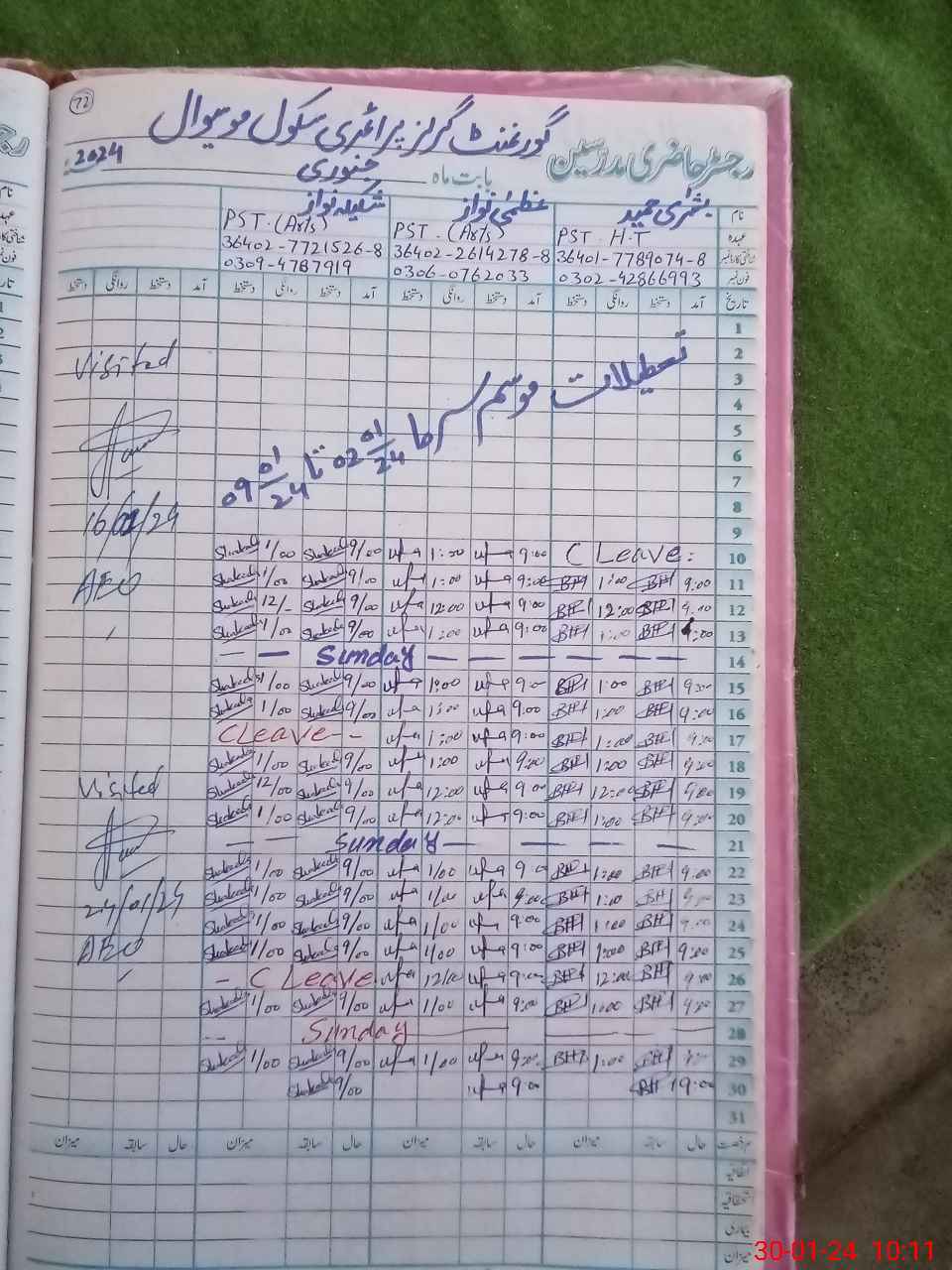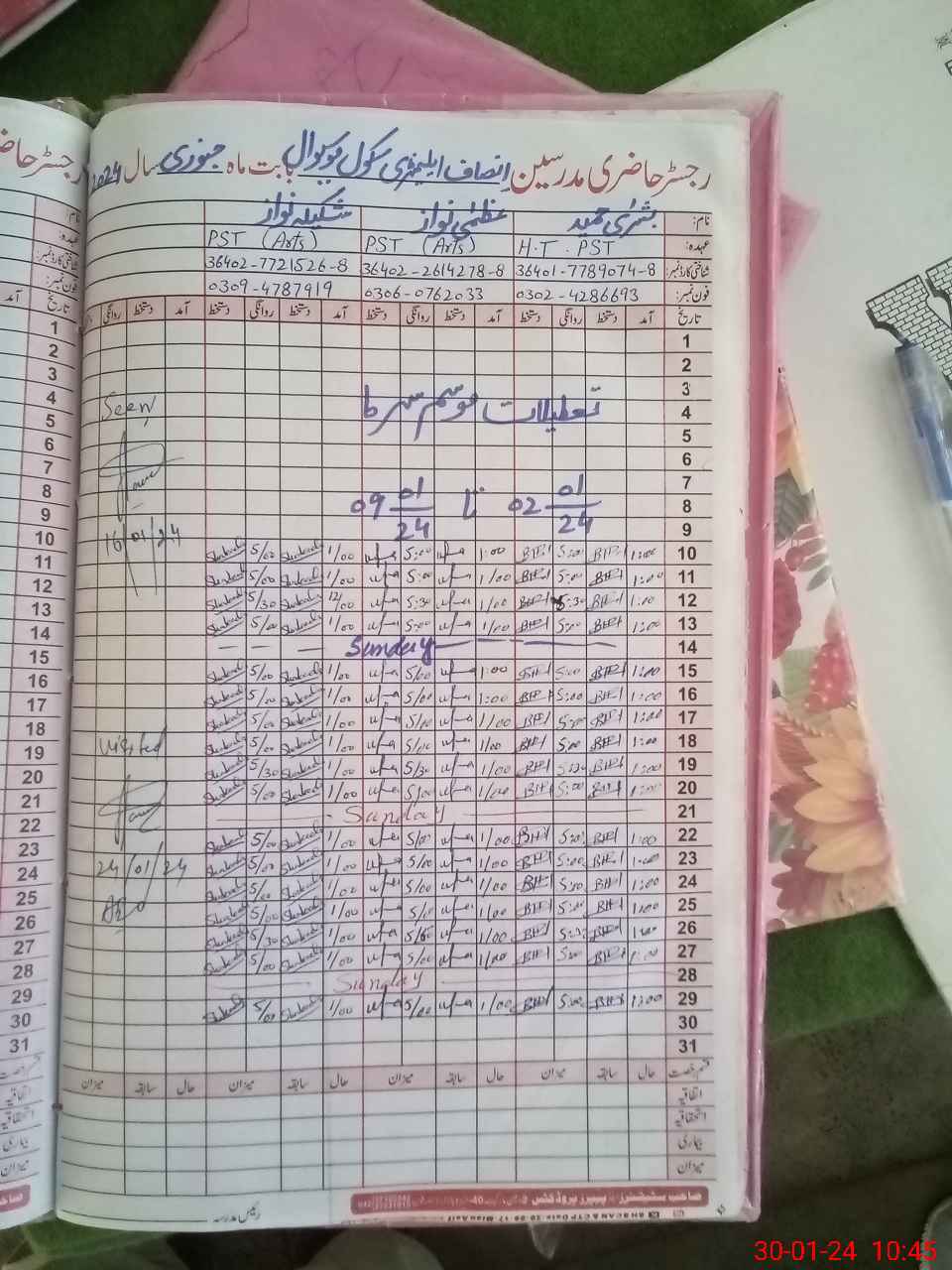 | Name: Uz**** Na**** Designation: (School Headmaster's/Headmistress's) PST Phone/Cell Number: 03**** |