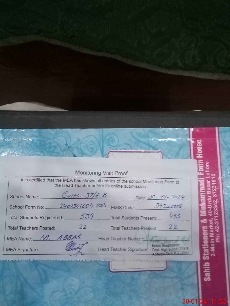 | EMIS Code: 39220008 | Name of School: GHS 37/E-B | |||