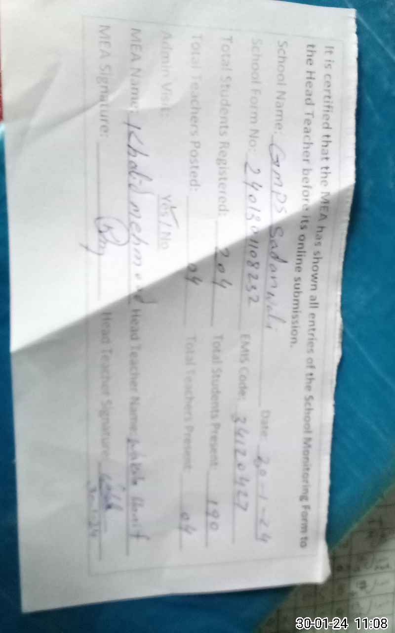 | EMIS Code: 34120427 | Name of School: GMPS SADAN WALI | |||