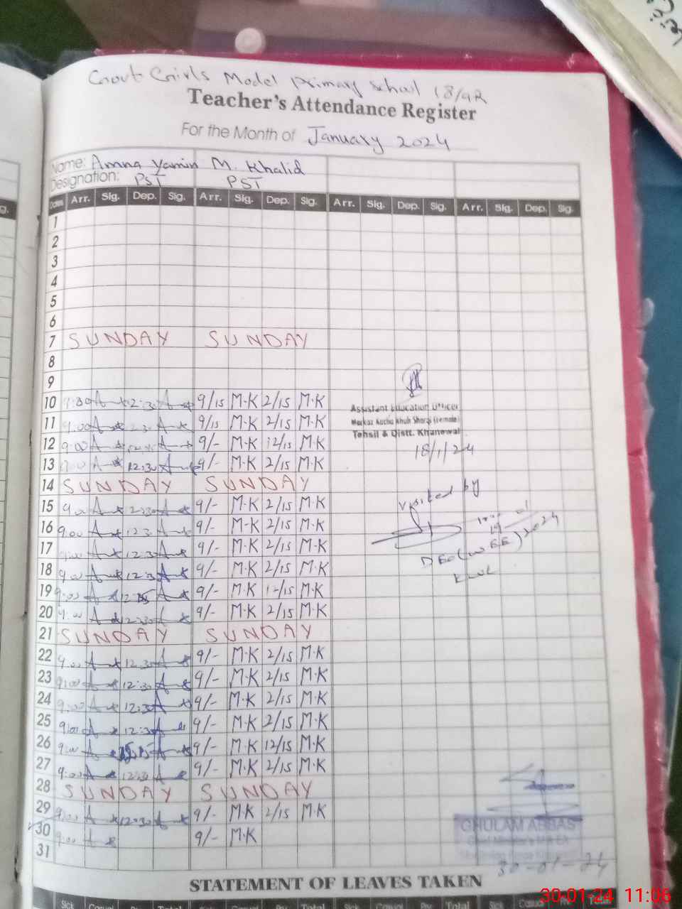 | Name: AM**** YA**** Designation: (School Headmaster's/Headmistress's) PST Phone/Cell Number: 03**** |