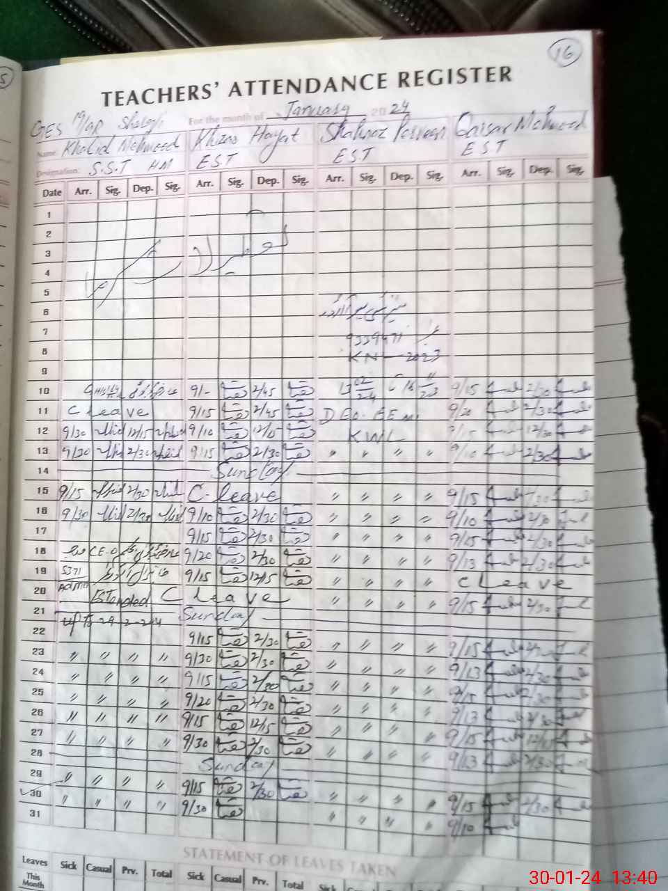 | Name: Kh**** Ha**** Designation: (School Headmaster's/Headmistress's) EST Incharge Phone/Cell Number: 03**** |