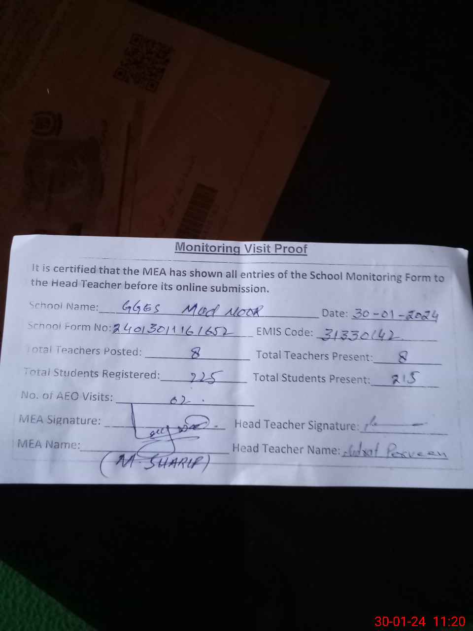 | Certified that this School was Inspected by the Undersigned MEA/DMO Today and the Information Stated Above is as Per Record. | |||||