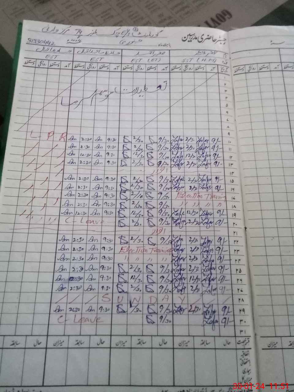 | CNIC | Full Name | Designation | R/C | Absence During Last Calender Month |