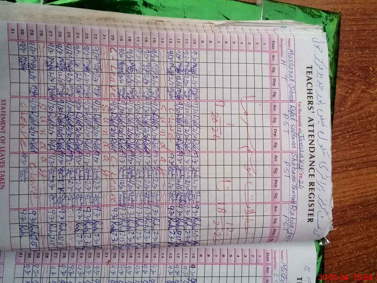| CNIC | Full Name | Designation | R/C | Absence During Last Calender Month |