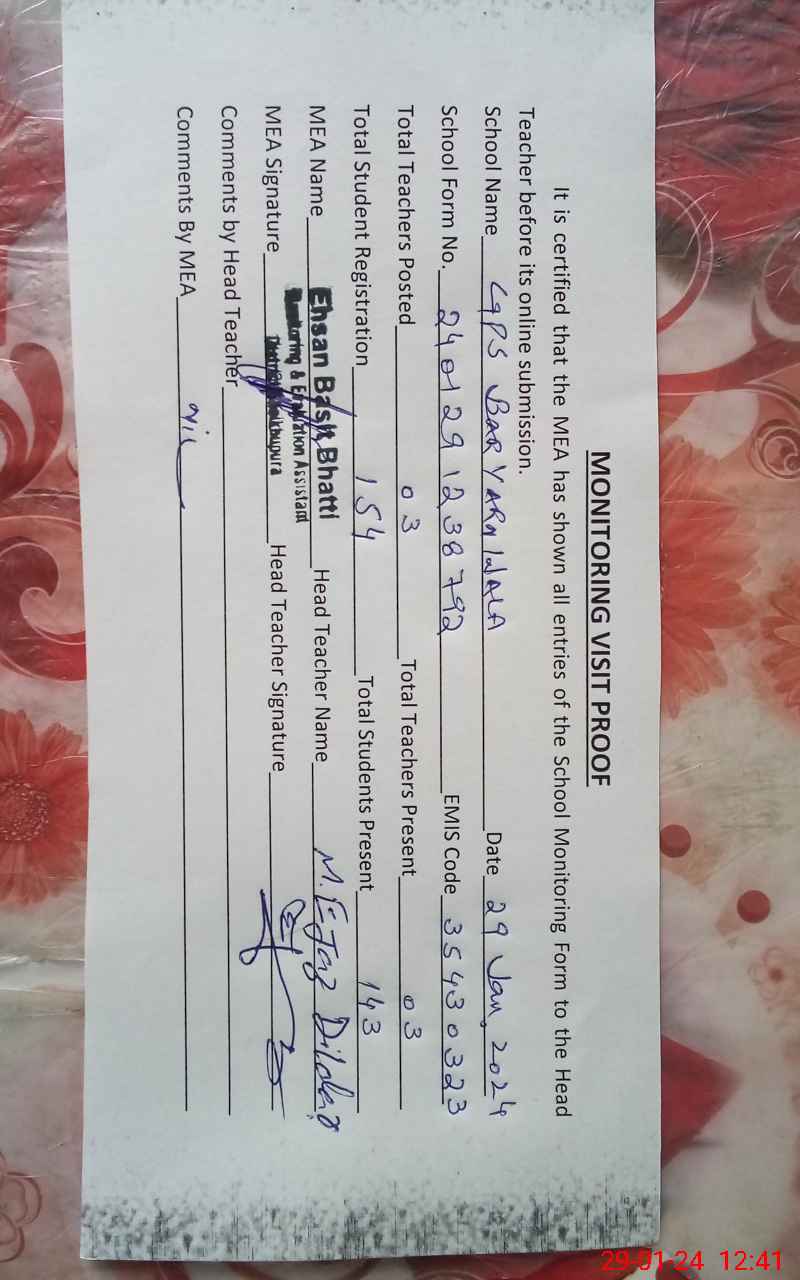 | EMIS Code: 35430323 | Name of School: GPS BARYARN -WALA | |||