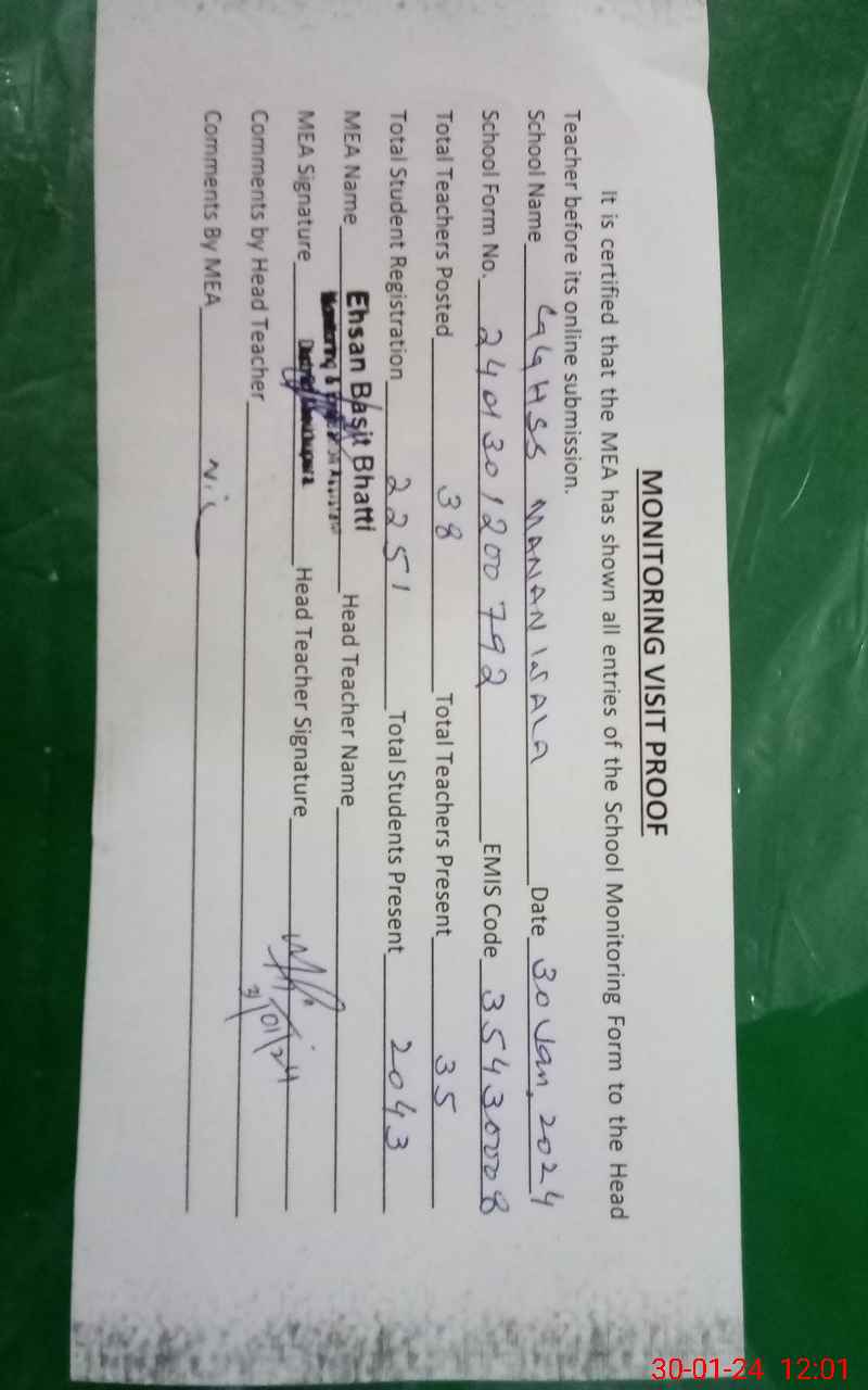 | Certified that this School was Inspected by the Undersigned MEA/DMO Today and the Information Stated Above is as Per Record. | |||||