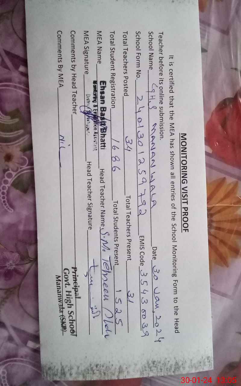 | Certified that this School was Inspected by the Undersigned MEA/DMO Today and the Information Stated Above is as Per Record. | |||||