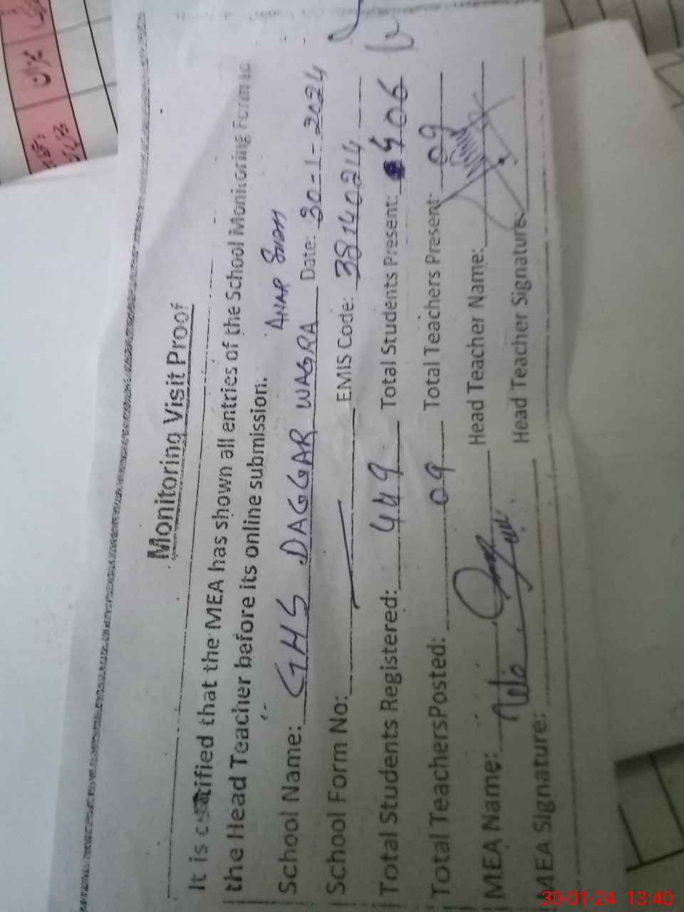 | EMIS Code: 38140214 | Name of School: GHS DAGGAR WAGWARA ANAR SHAH | |||