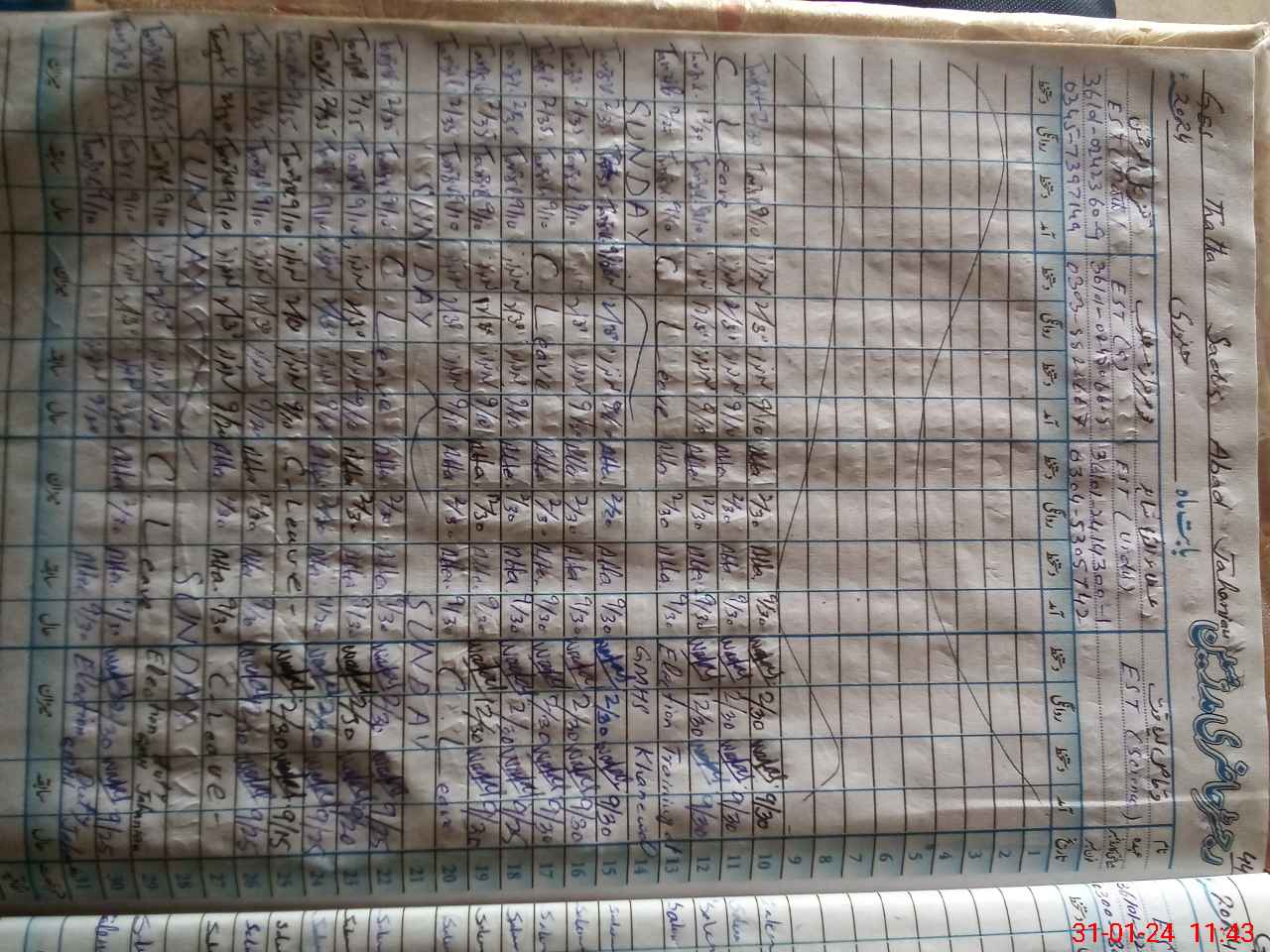 | CNIC | Full Name | Designation | R/C | Absence During Last Calender Month |