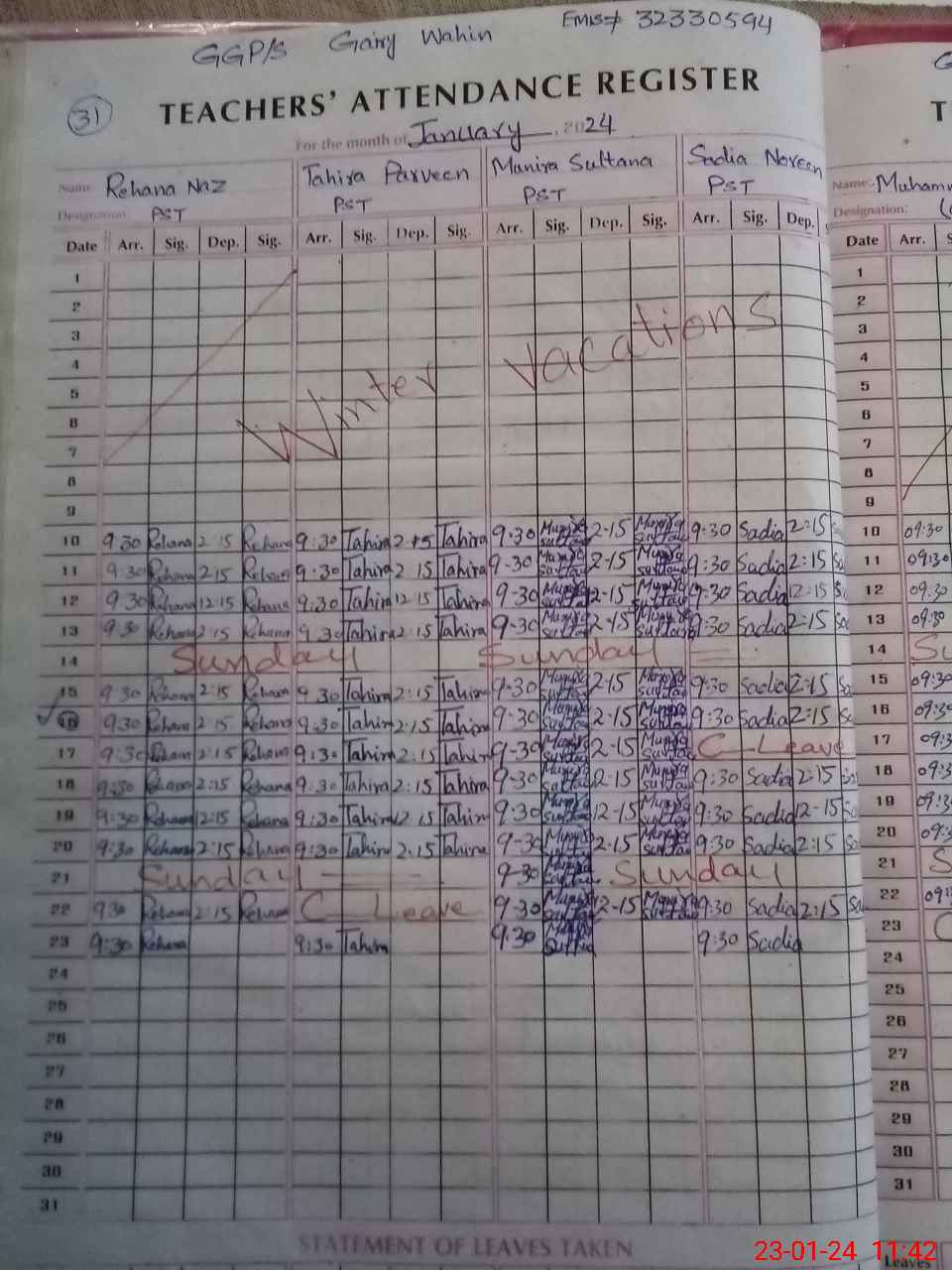 | 32**** | Mu**** Ya**** | CLASS IV | 0 | 0 | 0 | 0 | 0 | 0 | 0 | 0 | 0 | Casual | |
