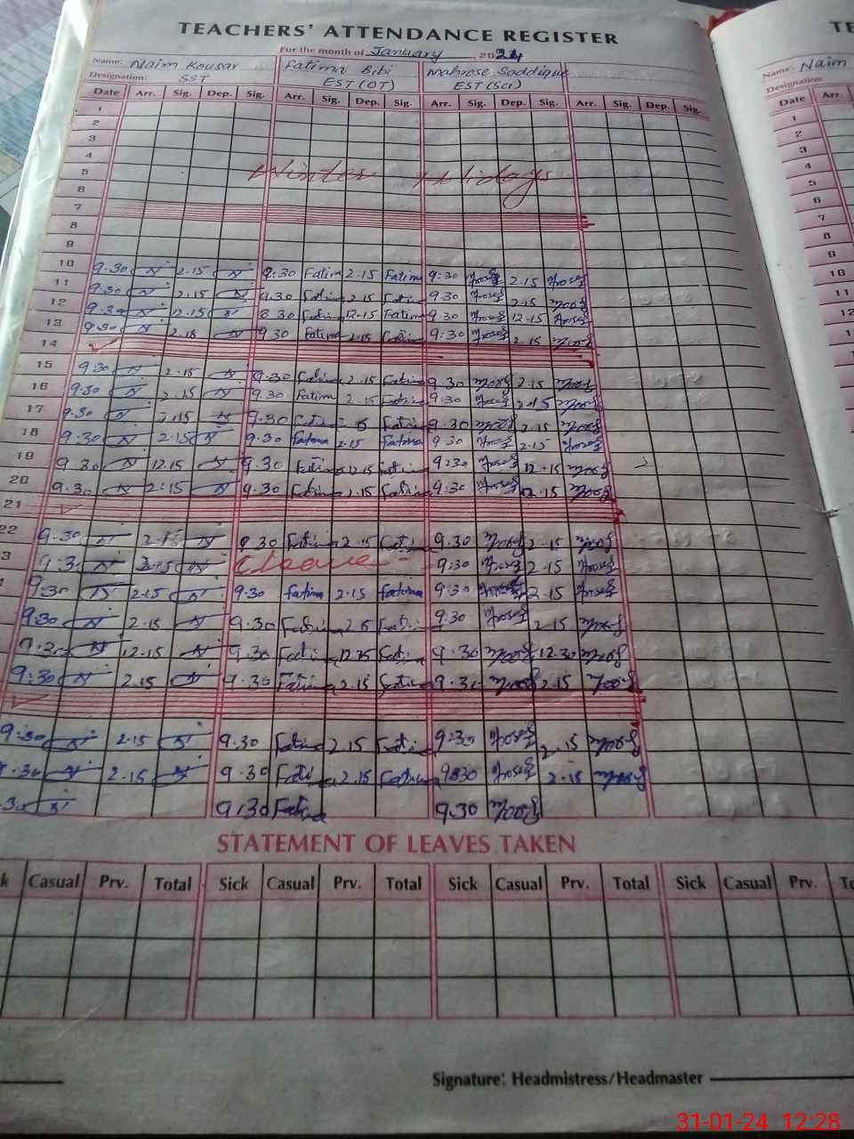 | Leave | Duty | Absent | Maternity | Medical | Ex- Pak |