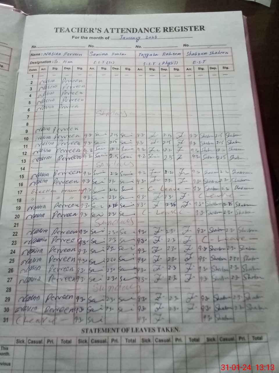| Remarks (Use Separate Page if Required): Head teacher approved leave not shown | |||||