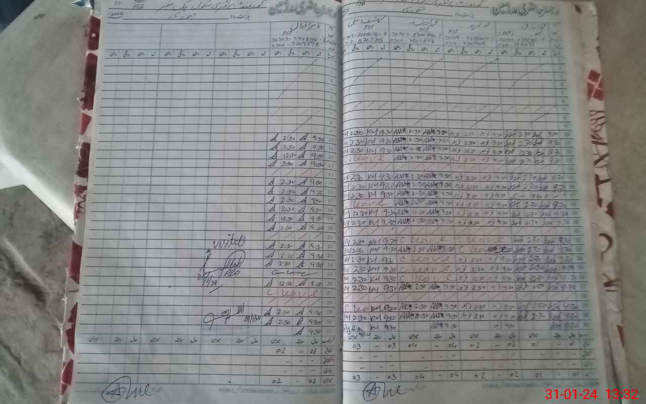 | CNIC | Full Name | Designation | R/C | Absence During Last Calender Month |