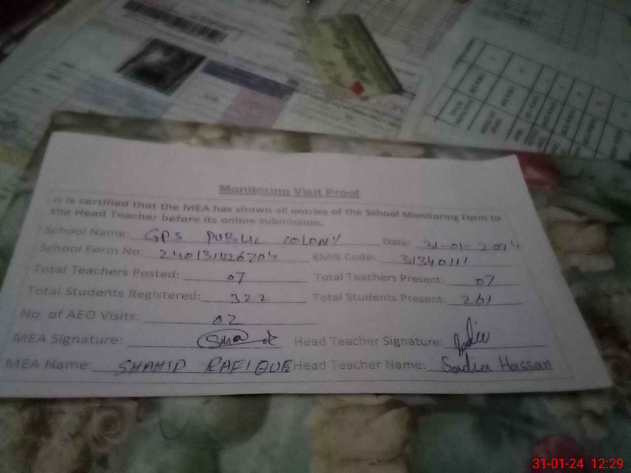 | EMIS Code: 31340111 | Name of School: GPS PUBLIC COLONY | |||