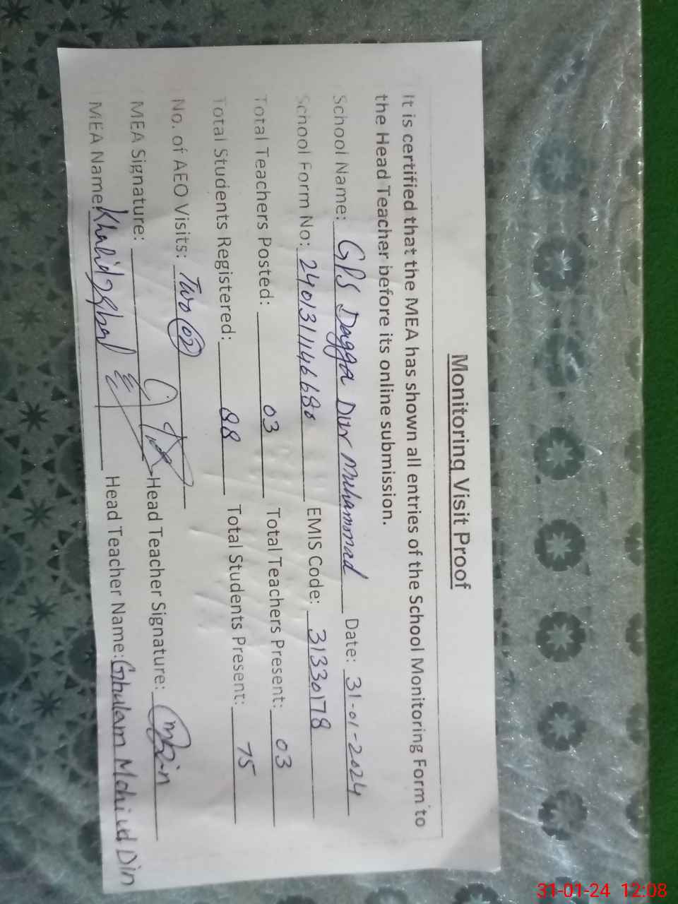 | EMIS Code: 31330178 | Name of School: GPS DAGGA DUR MUHAMMAD | |||