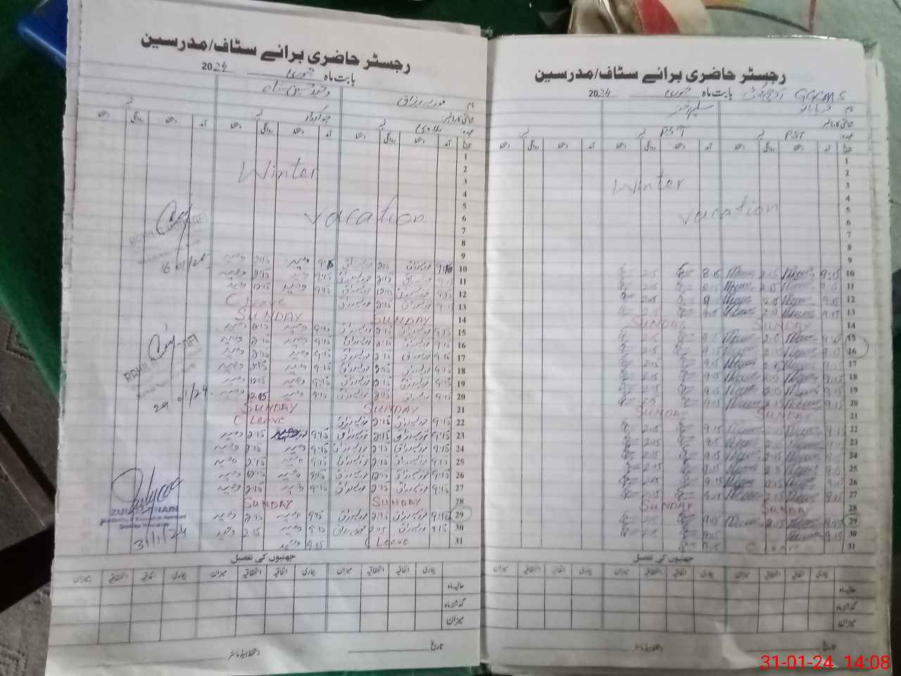 | CNIC | Full Name | Designation | R/C | Absence During Last Calender Month |