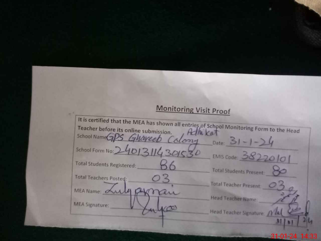 | EMIS Code: 38220101 | Name of School: GPS GHEREEB COLONY, ADHI KOT | |||