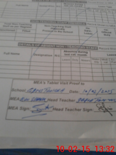 | Attendance Register | Head Teacher | MEA with School | Visit Proof |