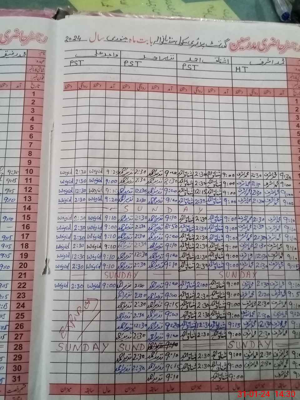 | CNIC | Full Name | Designation | R/C | Absence During Last Calender Month |