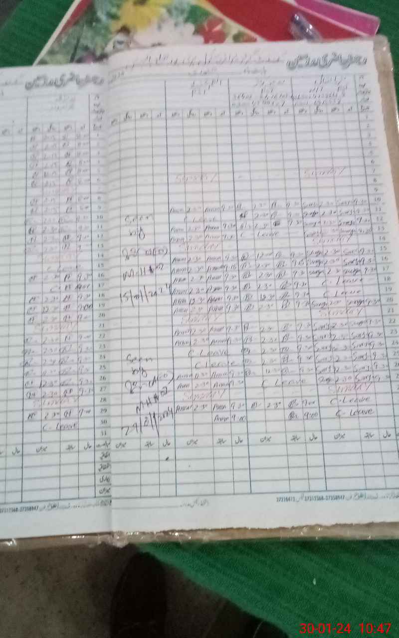 | CNIC | Full Name | Designation | R/C | Absence During Last Calender Month |