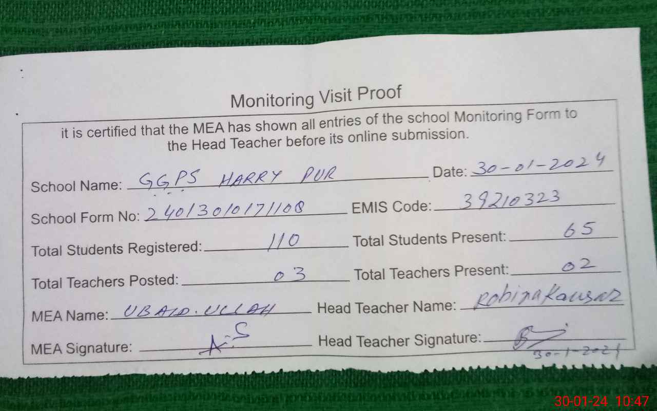 | EMIS Code: 39210323 | Name of School: GGPS HAREE PUR | |||