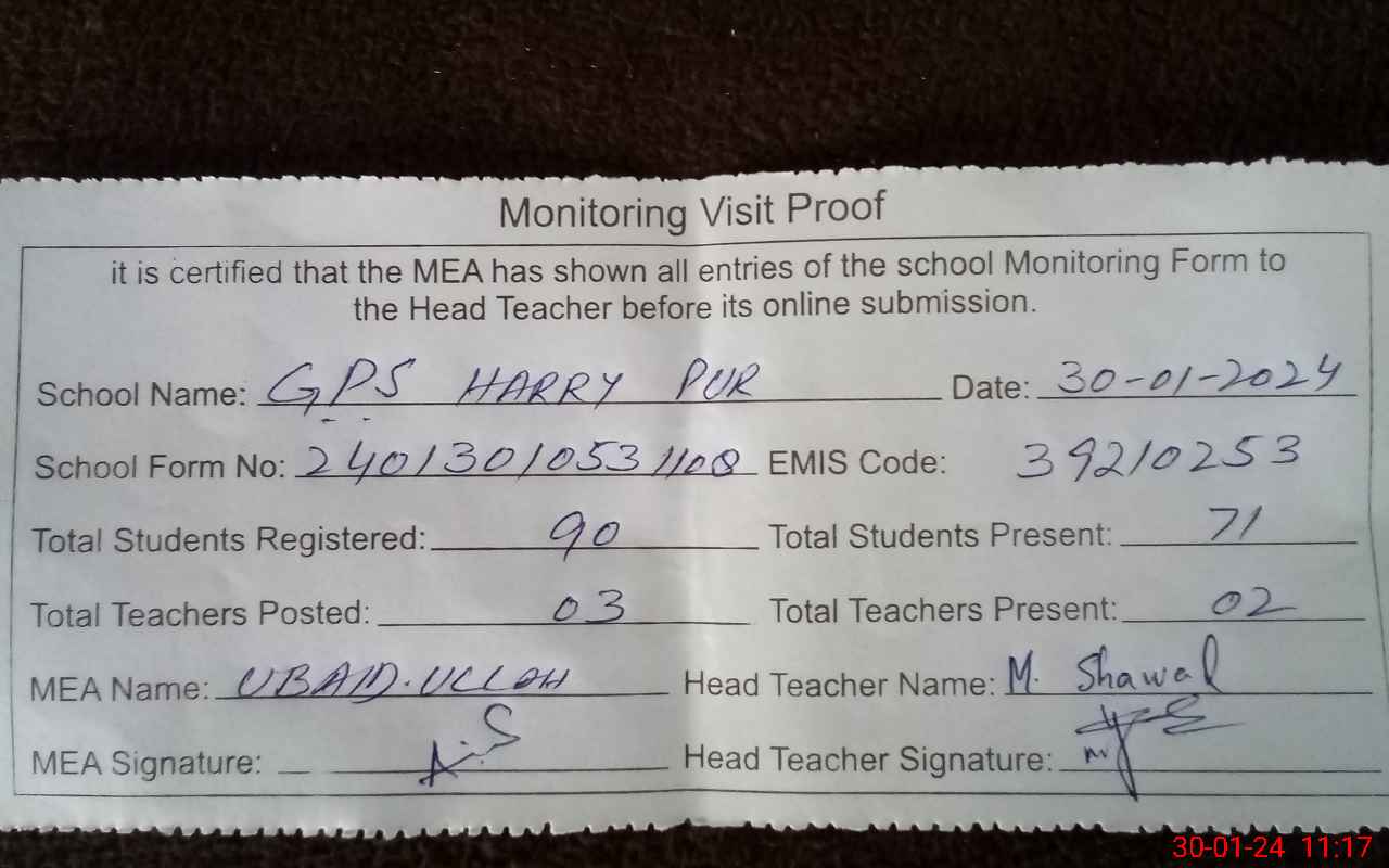 | EMIS Code: 39210253 | Name of School: GPS HARRY PUR | |||